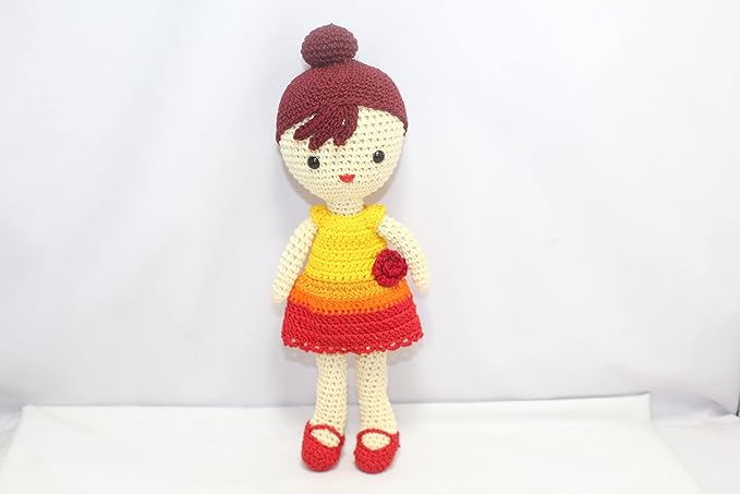 Crochet Small Doll with Multicolor Frock Toy Best Birthday Gift