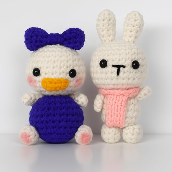 Cute Bunny & Daisy Duck Crochet Set | Stuffed Toy Animal Set for Gift | Best Kids Gift | Cute Purple Daisy Duck & Pink Bunny Rabbit Family of 2 | Soft Toys for Baby Girl & boy