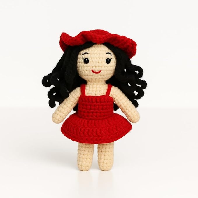 handmade crochet doll for girls 3 10 years | amigurumi soft toy in red dress with hat | washable, handcrafted plush doll | perfect birthday & baby shower giftHandmade Crochet Doll for Girls 3-10 Years | Amigurumi Soft Toy in Red Dress with Hat | Washable, Handcrafted Plush Doll | Perfect Birthday & Baby Shower Gift